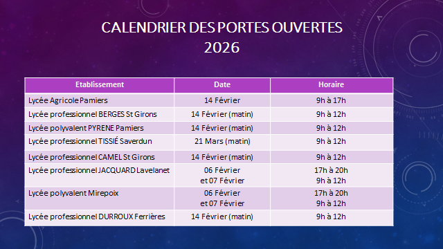Calendrier des Journées Portes Ouvertes en Ariège :